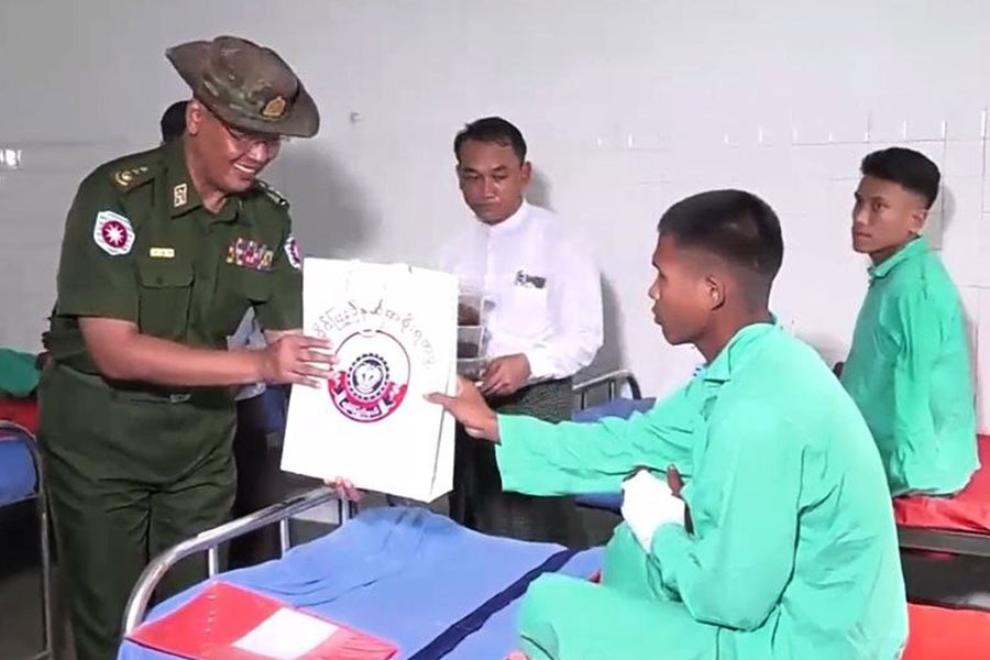 - Junta commander comforts wounded soldiers in Sittwe